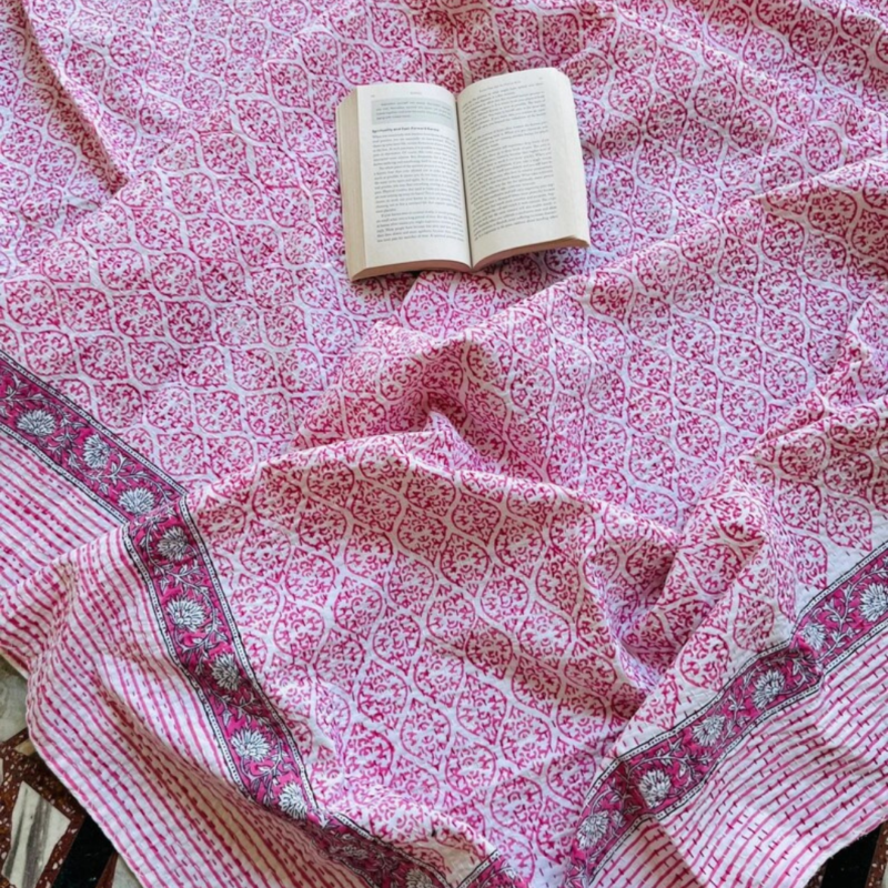 Discover the artistry and comfort of our Block Print Quilts, Dohar, Cushion & other beddings to bring elegance and warmth to your bedroom.