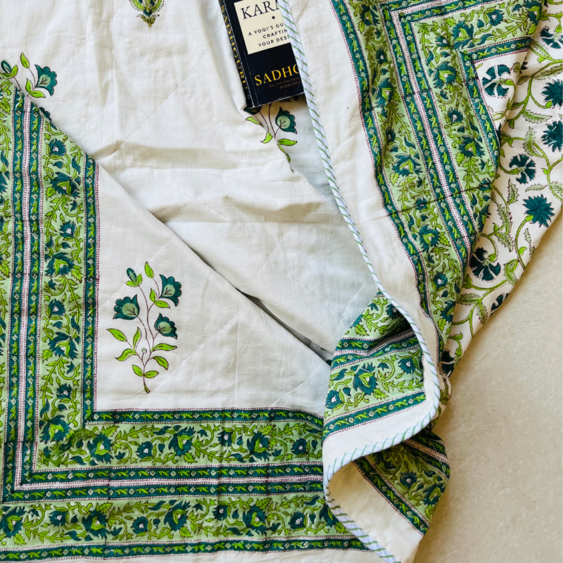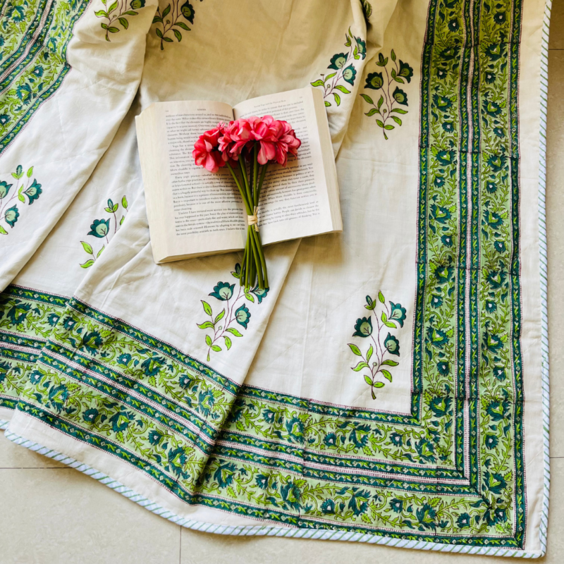 Handmade block Printed Floral Quilt