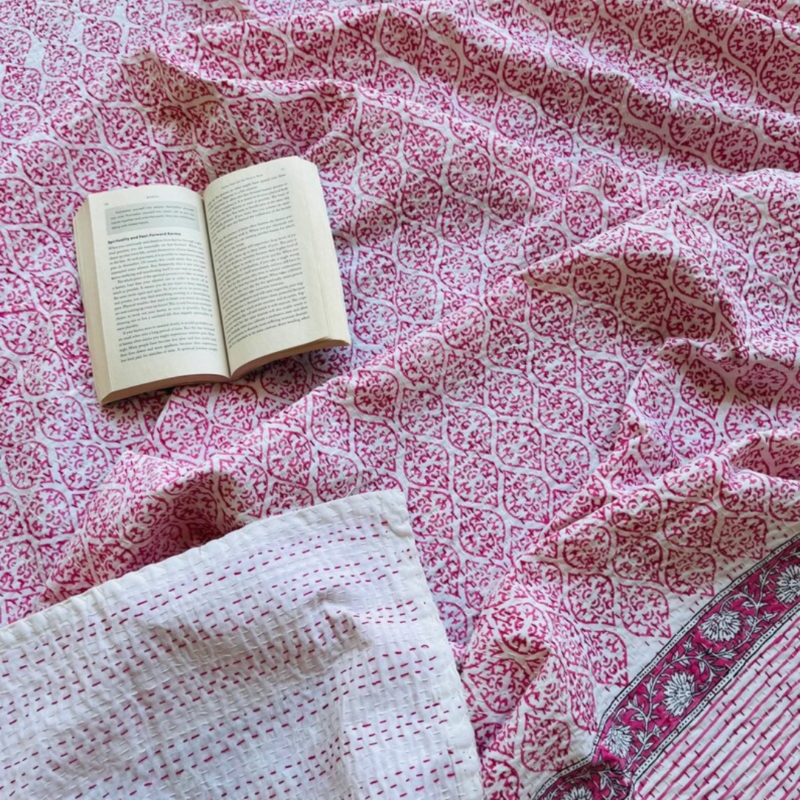 Handcrafted Block Print Kantha Quilt: Cozy Elegance